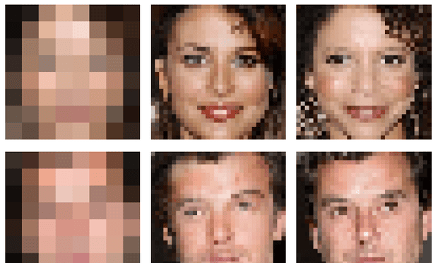 “Google’s neural networks have achieved the dream of CSI viewers everywhere: the company has revealed a new AI system capable of ‘enhancing’ an eight-pixel square image, increasing the resolution 16-fold and effectively restoring lost data. The neural network could be used to increase the resolution of blurred or pixelated faces, in a way previously thought impossible; a similar system was demonstrated for enhancing images of bedrooms, again creating a 32×32 pixel image from an 8×8 one.”